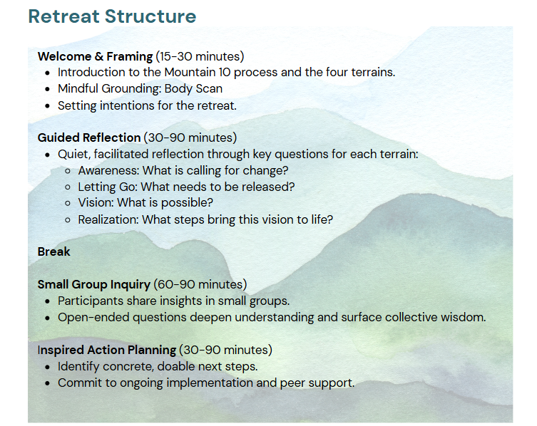 My own reflections from a recent Mountain 10 retreat with Rachel