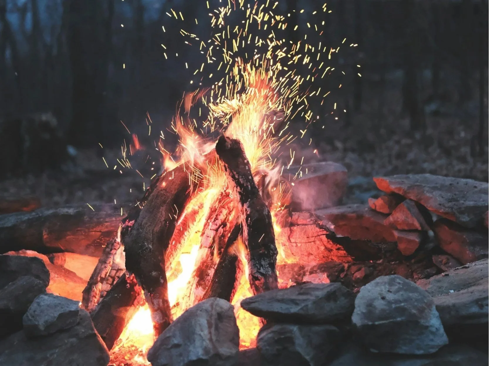 As evening arrives, the sky is illuminated by stars and a waning crescent moon, and warmed with heartfelt conversations by the fire.